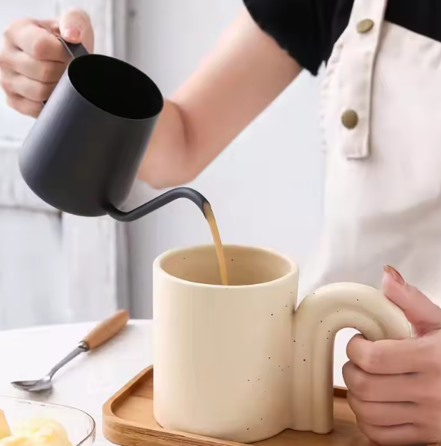 custom creative ceramic cup with arched handle suitable for home and office coffee gift cup for couples and girls